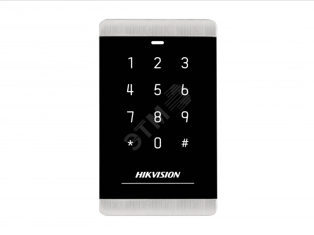 Hikvision DS-K1103MK - считыватель Mifare карт с сенсорной клавиатурой. Частота считывания 13.56МГц. Дальность считывания 30-50 мм. Поддержка протоколов RS485 и Wiegand (W26/W34). Питание DC12В, 6Вт. Рабочие условия от -40C до +70C. Защита IP64. Размер 129х76х14.7мм. Пластик.