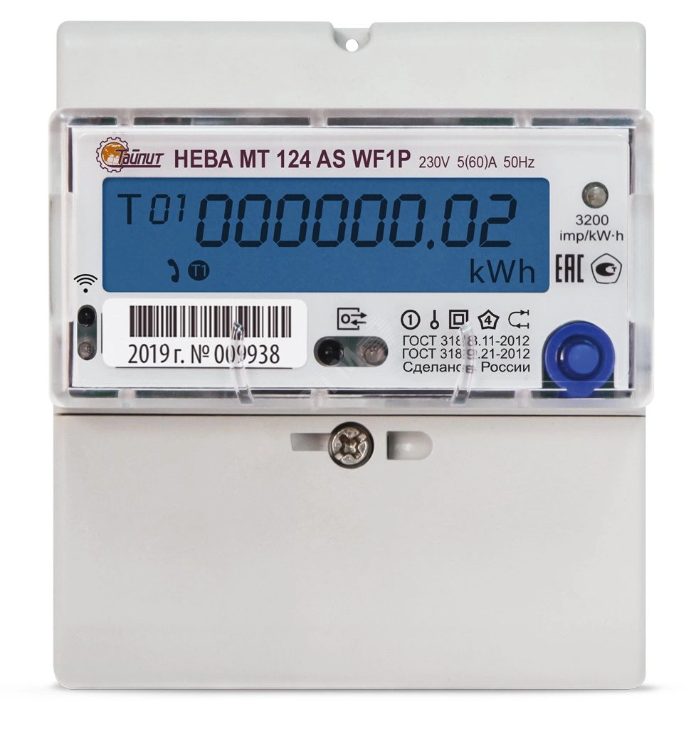 Счётчик электроэнергии 1ф НЕВА МТ 124 AS WF1P 5(60)А 78 регион