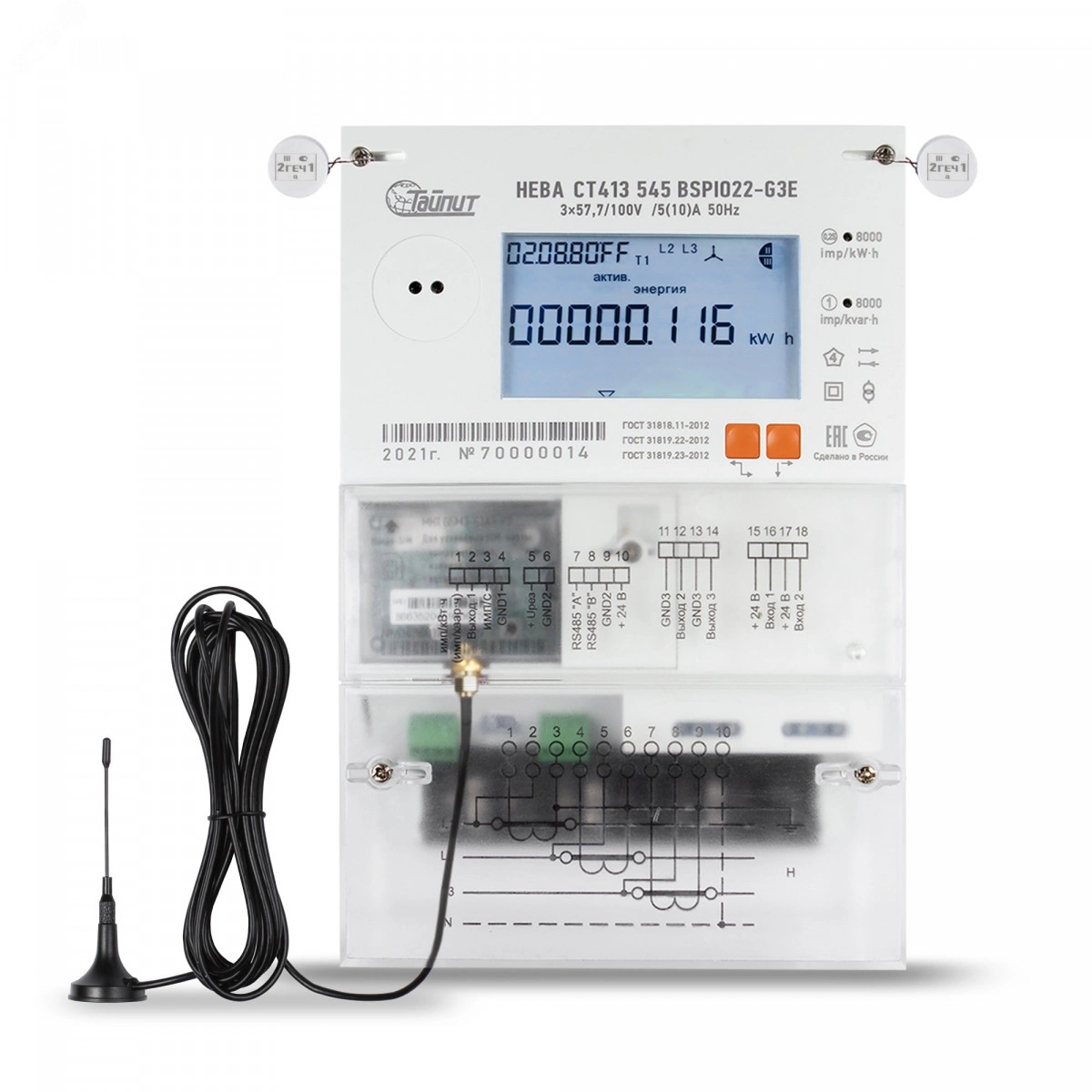 Счётчик электроэнергии трехфазный НЕВА СТ413 545 BSPIO22-G3E Ур регион с антенной AM918G3L300R174SM