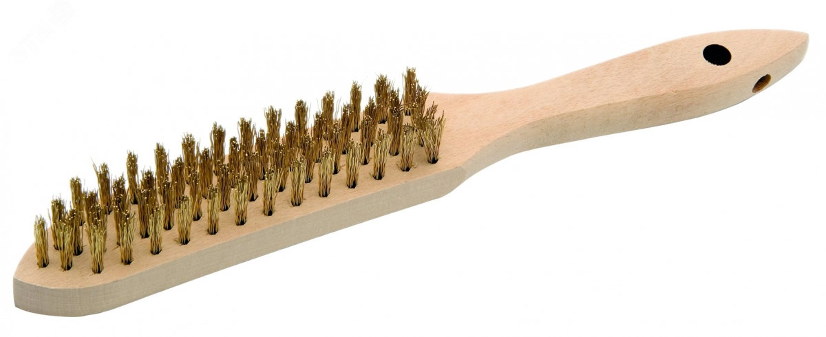 Щетка-крацовка ручная, латунная, 4-рядная набивка из латунной проволоки буковый корпус с 2 отверстиями, для подвешивания