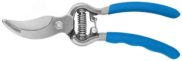 Секатор, режущие кромки внахлест, усиленная пружина, цельнокованый, ПВХ изогнутые ручки 215 мм