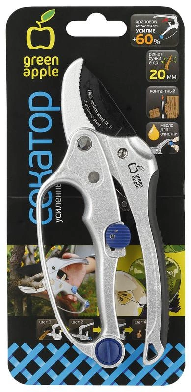 Полное описание: Секатор усиленный с храповым механизмом контактный (6/60) Green Apple Б0003058