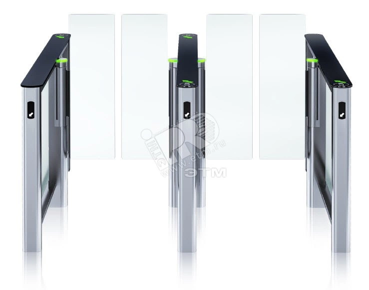 Центральный элемент PERCo-STD-01 для скоростного турникета PERCo-ST-01 с распашными створками может встраиваться в ряд к боковым элементам и иметь стандартную ширину прохода 650 мм или увеличенную 900 мм. Увеличенная ширина прохода позволяет организовать проезд инвалидных колясок, а также дополнительный выход в случае чрезвычайной ситуации. При проходе створки турникета распахиваются. Каждая центральная секция позволяет организовать одну дополнительную зону прохода. Система слежения снабжена двумя уровнями инфракрасных датчиков, 14 пар расположены на верхнем уровне и 28 на нижнем, что гарантирует безопасность прохода при высокой пропускной способности, а также защиту от прохода двух и более человек одновременно.