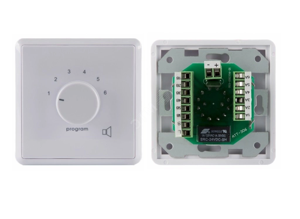 Применяется для раздельного выбора звуковых каналов для одного или нескольких громкоговорителей подключенных к одной линии оповещения. Позволяет подключать до 6 каналов (программ), один из которых аварийный. Отличительной особенностью является наличие реле принудительного переключения на аварийный канал. При поступлении 24 В на встроенное реле, происходит принудительное переключение на аварийный звуковой канал (программа 1), позволяя аварийному звуковому сигналу поступать на громкоговоритель без ручного переключения, что соответствует нормам пожарной безопасности.