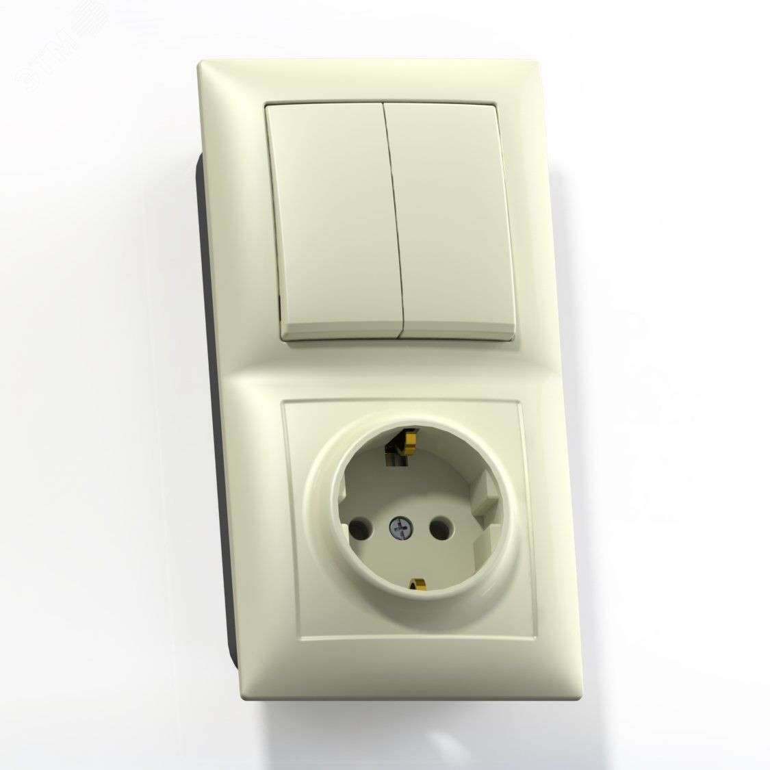 СЕЛЕНА Блок комбинированны скрытой установки (двухклавишный выключатель +розетка с заземляющим контактом) БКВР-412, слоновая кость