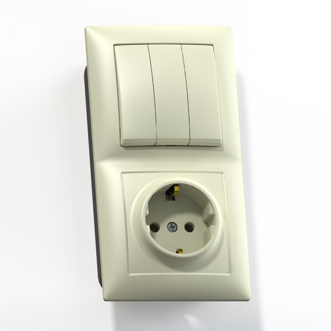 СЕЛЕНА Блок комбинированны скрытой установки (трехклавишный выключатель +розетка с заземляющим контактом) БКВР-413, слоновая кость