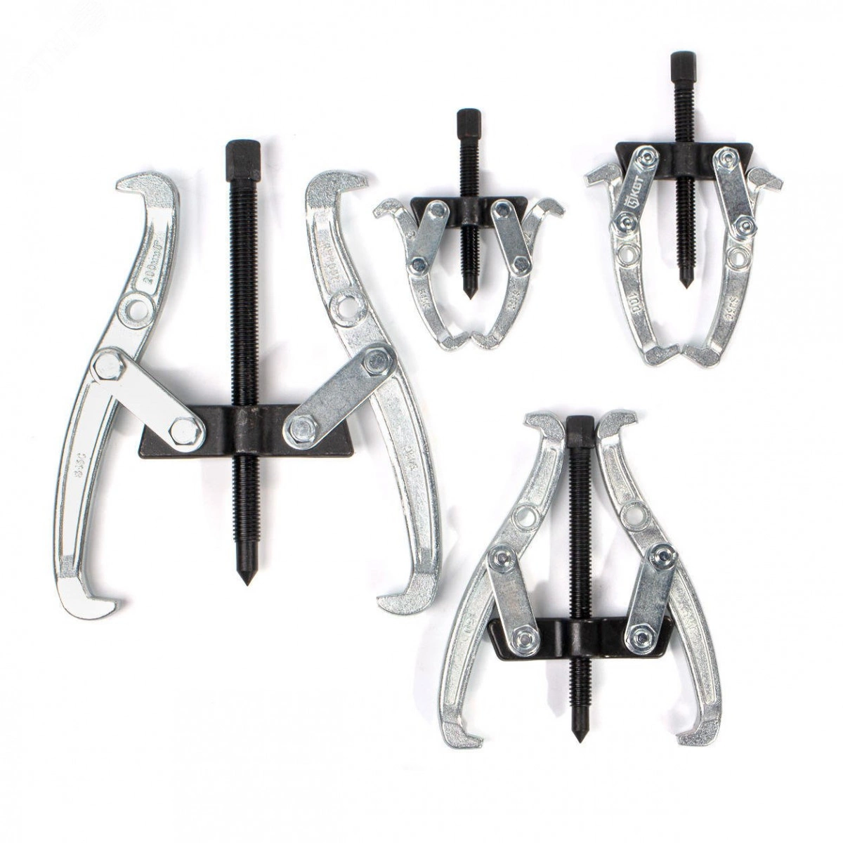 Предназначены для демонтажа составных частей оборудования, имеющих посадки с натягом, и являются средством механизации при проведении ремонтных работ. Материал лап - кованная инструментальная сталь. Покрытие лап - оцинкование. Трапецеидальная резьба упорного винта