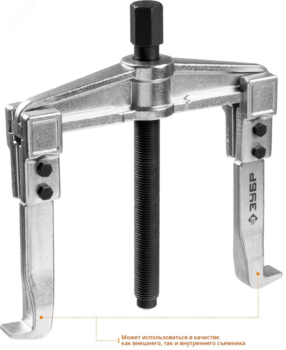 Захваты съемника выкованы из качественной инструментальной стали, что обеспечивает долгий срок службы при работе с высокими нагрузками. Позволяет работать с широким рядом узлов.