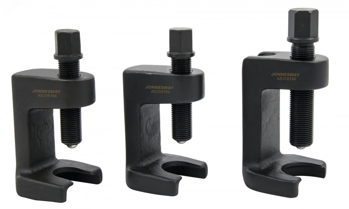 Набор съемников JONNESWAY применяется для обслуживания шарнирных соединений рулевых тяг, шаровых опор, реактивных тяг и т.п. в ограниченном пространстве и рекомендован к использованию при обслуживании легковых автомобилей и легких грузовиков таких производителей, как VAG, BMW, OPEL, FORD, MITSUBISHI и т.д.
