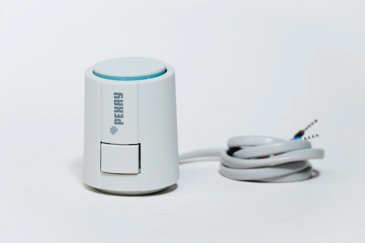Предназначен для монтажа на вентилях коллектора. Монтаж и демонтаж производится защелкиванием при помощи адаптера для вентиля и кнопки. Индикатор функционирования для контроля положения вентиля. Принцип действия: в обесточенном состоянии вентиль закрыт. Присоединительные провода: 2 x 0,5 мм2, длиной 1 м. Поставляется открытым для более легкого монтажа. Благодаря этому возможен режим обогрева без подключения электрики в период строительных работ.
