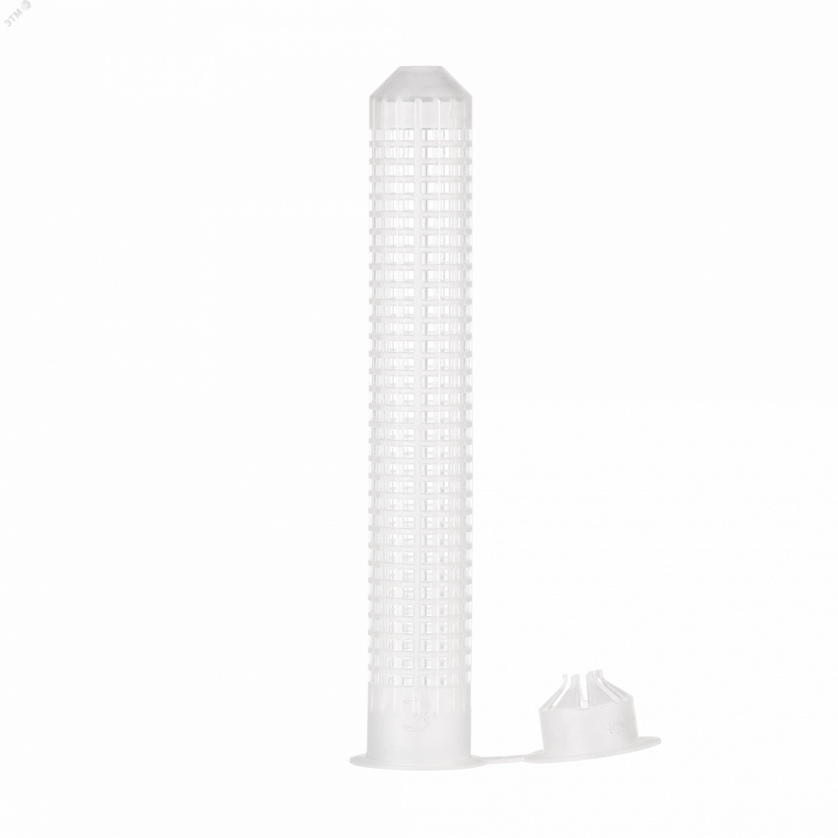 Сетчатая гильза предназначена для контроля объема инекционной массы. Изделие используется для более плотного крепления анкерных соединений в пустотелые основания пустотелый кирпич, керамзит, керамзитный силовой блок, бетон с пустотами. Втулка-колпачок позволяет центрировать резьбовую шпильку в отверстие.
