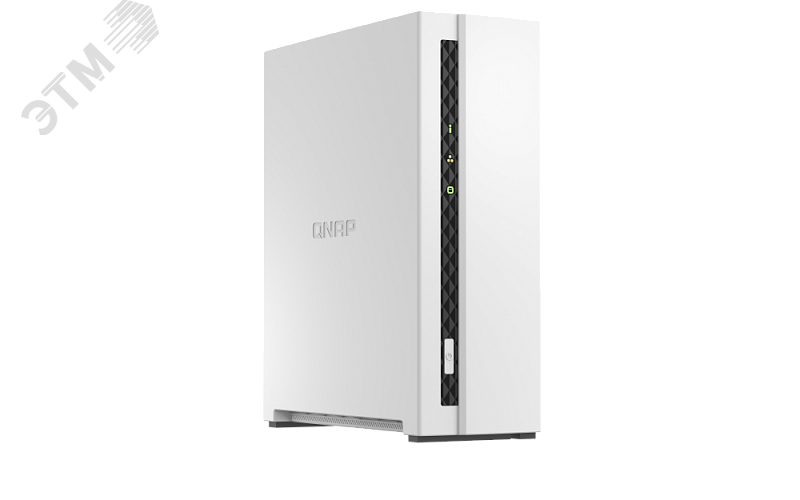 Сетевой накопитель, 1 отсек 3,5''/2,5''. ARM  Cortex-A55 1,8 ГГц, 2 ГБ. Компактный TS-133 отличается лаконичным дизайном и идеально впишется в интерьер вашего дома или офиса. Простота и удобство использования распространяется и на дисковые накопители, которые можно установить без использования отвертки. TS-133 оснащен четырехъядерным процессором ARM Cortex-A55 с тактовой частотой 1,8 ГГц, оперативной памятью 2 ГБ, одним гигабитным портом LAN и поддержкой одного жесткого диска SATA 6 Гбит/с, что обеспечивает надежную производительность для запуска различных домашних и бизнес-приложений NAS. TS-TS-133 имеет небольшой размер и остается высокопроизводительным, прохладным и тихим благодаря вентилятору охлаждения с автоматически регулируемой скоростью вращения.