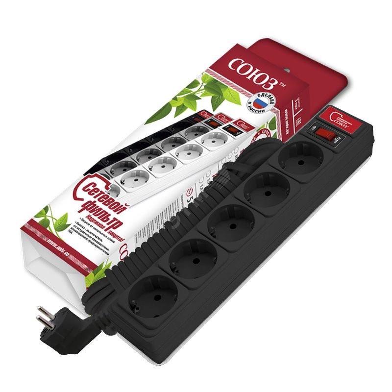 Полное описание: Сетевой фильтр СОЮЗ ПВС 3*0,75 5гн., выключатель с индикацией, с/з, з/ш, черный 5м