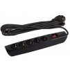 Сетевой фильтр SFX-5es-2m-B с надежной защитой с заземлением с выключателем 5 розеток 2м 10А черный