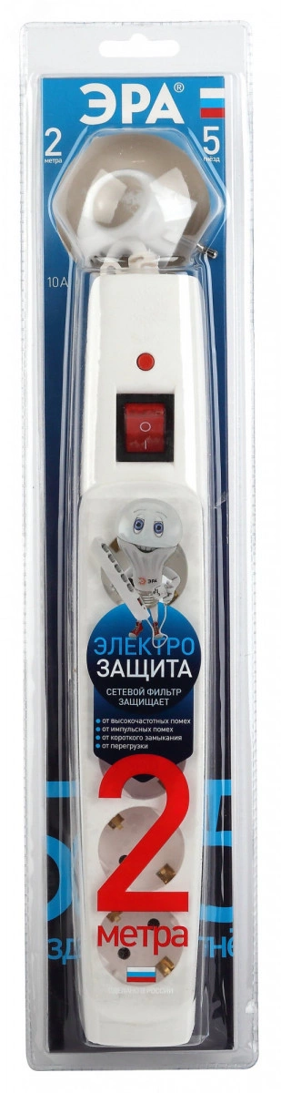 Сетевой фильтр SFX-5es-2m-W с надежной защитой с заземлением с выключателем 5 розеток 2м 10А белый