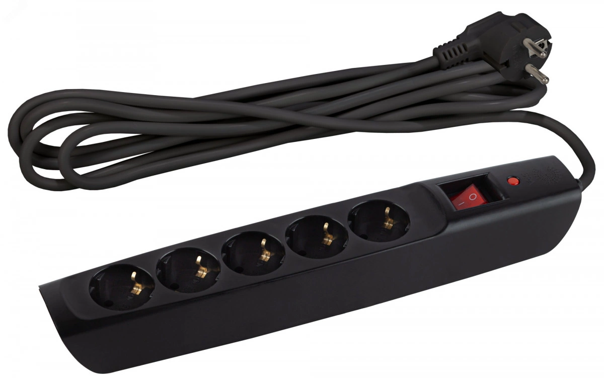 Сетевой фильтр SFX-5es-4m-B с надежной защитой с заземлением с выключателем 5 розеток 4м 10А черный
