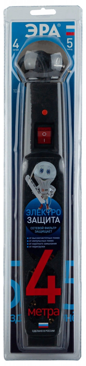 Сетевой фильтр ЭРА SFX-5es-4m-B с надежной защитой незаменим в современном доме. Он позволяет безопасно подключать технику, исключая воздействия на нее короткого замыкания, фильтруя импульсные и высокочастотные помехи. Длина его провода составляет 4 метра, мощность - 2200 Вт, что обеспечивает надежную бесперебойную работу всех подключенных устройств. Корпус сетевого фильтра из негорючего полипропилена имеет 5 розеток с заземлением и выключатель с подсветкой для быстрого обесточивания подключенных приборов. Сетевые фильтры разрабатывается собственным техническим бюро, проходит проверку на всех этапах производства, что обеспечивает высокое качество продукта.