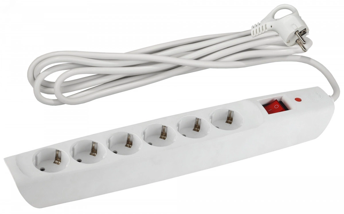 Сетевой фильтр SFX-6es-4m-W с надежной защитой с заземлением с выключателем 6 розеток 4м 10А белый