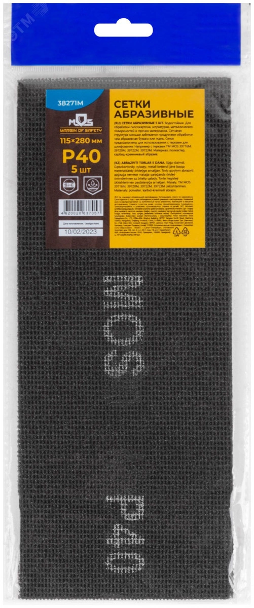 Набор 5 шт. Водостойкие. 115 х 280 мм. Для обработки гипсокартона, штукатурки, металлических поверхностей и прочих материалов. Сетчатая структура меньше забивается продуктами обработки чем абразивная бумага или ткань. Сетки предназначены для использования с терками для шлифования. Материал - полиэфирная ткань, карбид-кремниевый абразив. Упаковка - пакет с подвесом.