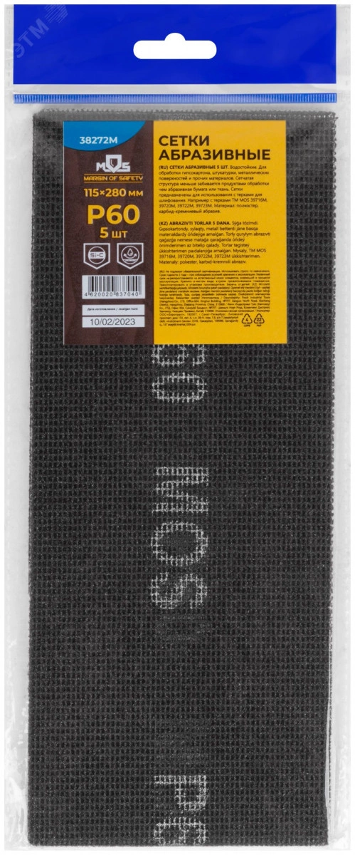 Набор 5 шт. Водостойкие. 115 х 280 мм. Для обработки гипсокартона, штукатурки, металлических поверхностей и прочих материалов. Сетчатая структура меньше забивается продуктами обработки чем абразивная бумага или ткань. Сетки предназначены для использования с терками для шлифования. Материал - полиэфирная ткань, карбид-кремниевый абразив. Упаковка - пакет с подвесом.