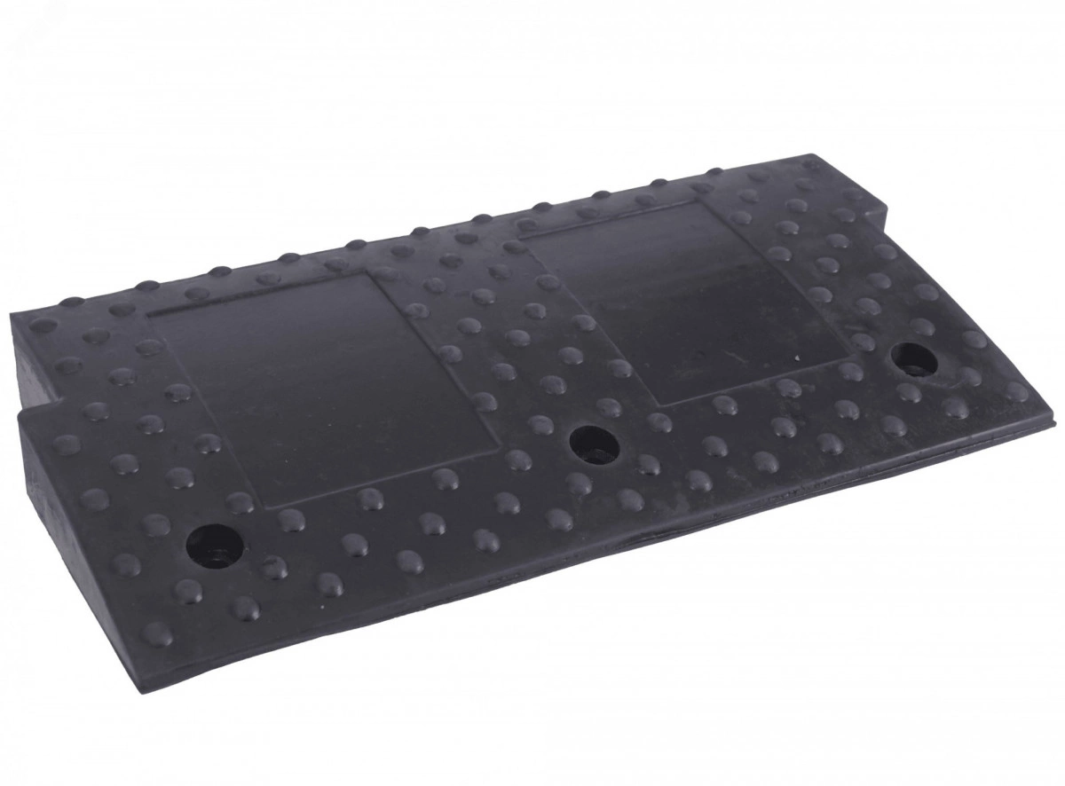 Формовое изделие из резины черного цвета. По бокам предусмотрены соединители типа ''пазл'' для выстраивания в сплошную линию. На верхней части изделия имеется рифление в виде полусфер для предотвращения проскальзывания колес. Для светоотражателей на поверхности резины есть углубления, светоотражатели можно заказать отдельно.