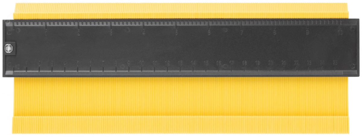 Шаблон разметочный FIT IT предназначен для быстрого копирования контуров сложной формы (например, труб), требующих фигурной вырезки в материале - керамограните, кафельной плитке, ламинате, линолеуме и т. д. Толщина пластин составляет 2 мм, что позволяет переносить контуры предметов с высокой точностью. Шаблон изготовлен из ABS-пластика, устойчивого к ударам и падениям. Плавный ход пластин позволяет быстро и эффективно переносить разнообразные контуры. На корпус нанесена шкала с целью использования инструмента в качестве линейки.