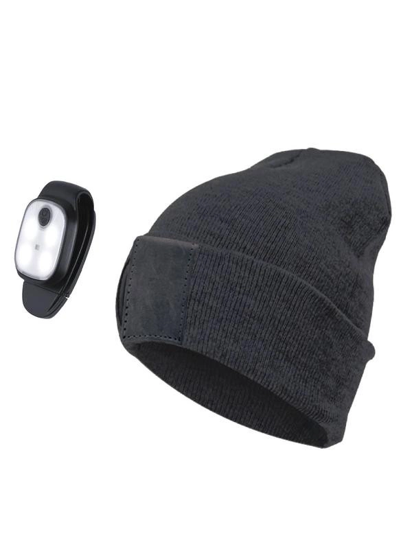 Шапка с фонариком 215х205х5 черн. (фонарь 68х40х23мм снимается и крепится в другое место; аккум. 3.7В/300мА.ч) 3 режима свечения+функция SOS Космос KOCHat2_black