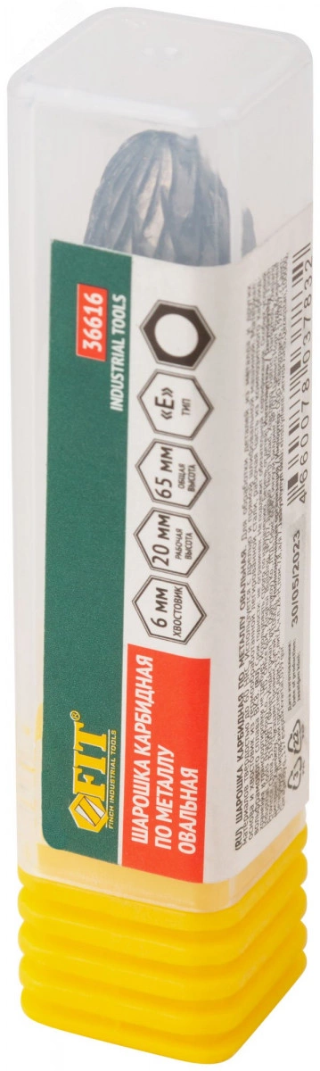 Шарошка карбидная, штифт 6 мм, тип ''E'', овальная 12х20х65 мм