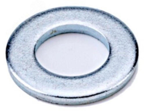 Шайба плоская, круглая, входящая в крепежные многосоставные разборные соединения. Имеет защитное цинковое покрытие. Применяется вместе с болтами, винтами, шпильками, гайками, саморезами, шурупами. Создает более увеличенную площадь опорной поверхности.