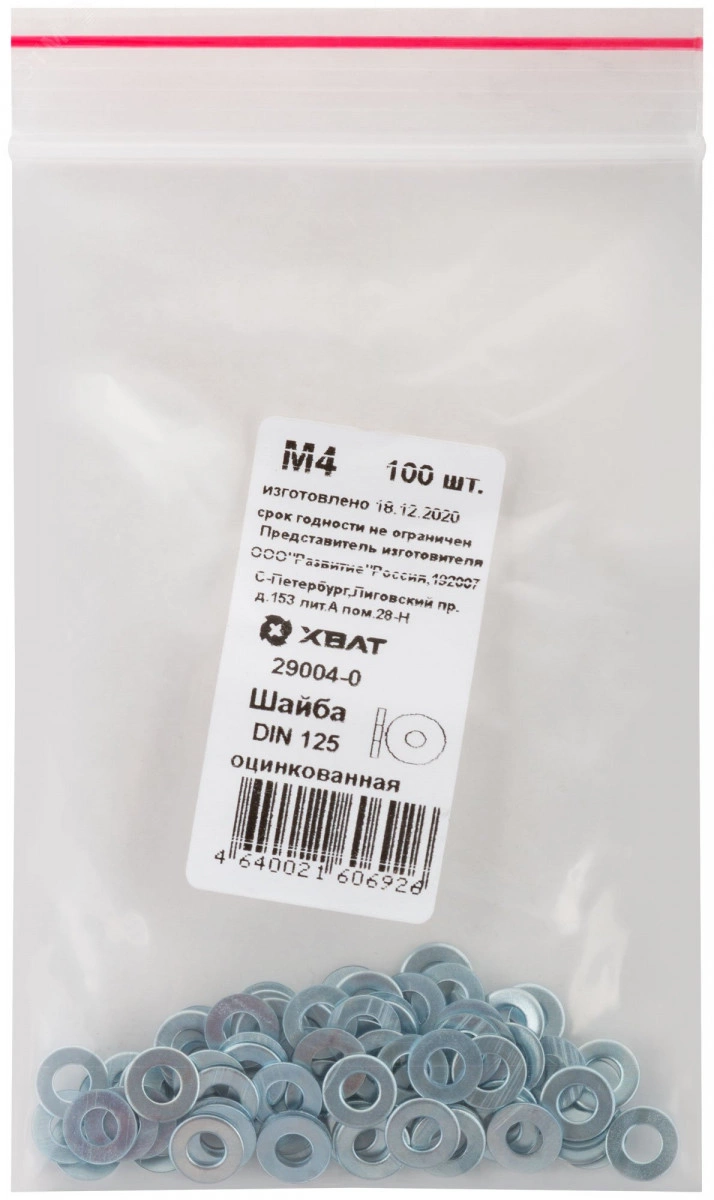 Шайба DIN125 М4 плоская оцинкованная (100 шт)