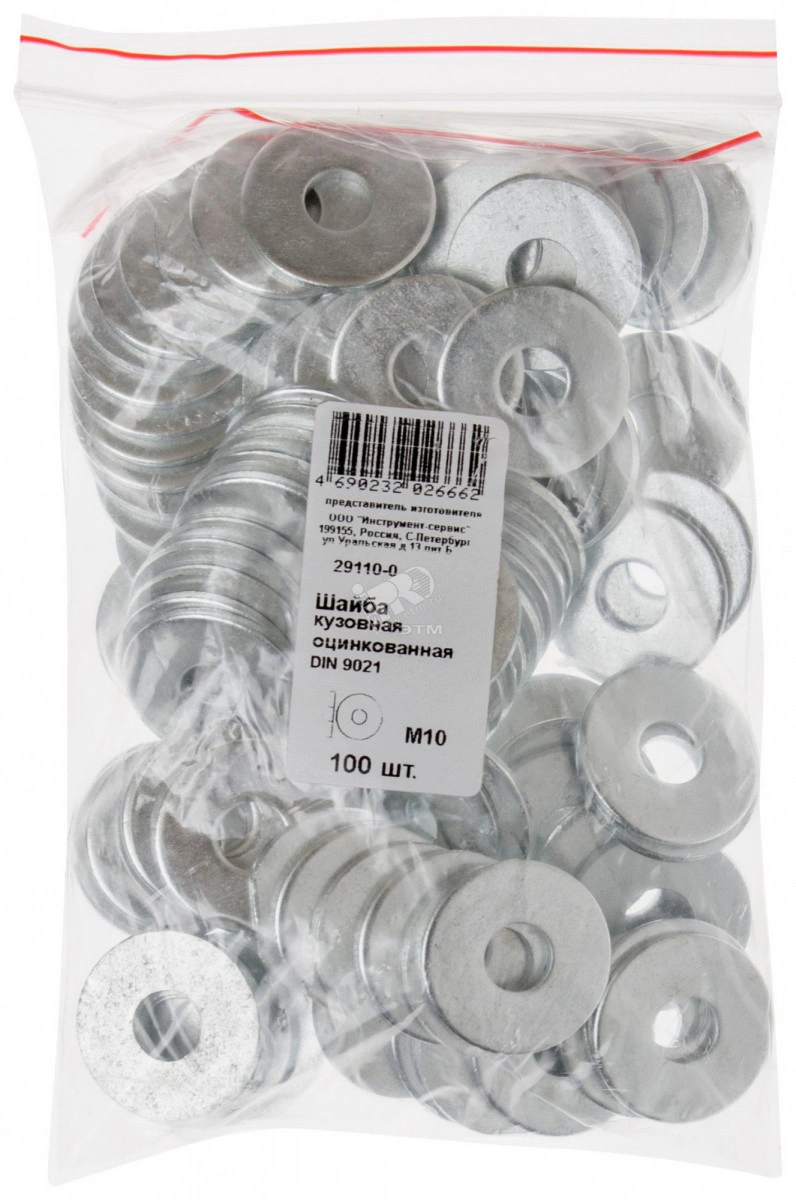 Шайба DIN9021 М10 увеличенная кузовная оцинкованная (100 шт)