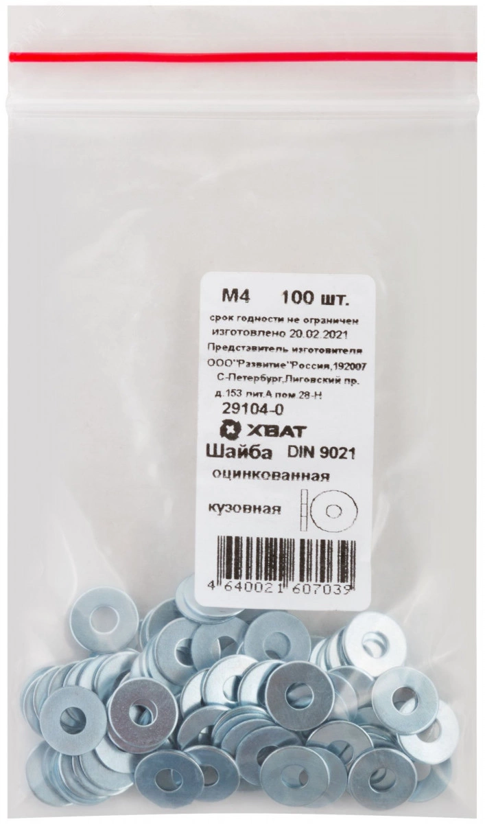 Шайба DIN9021 М4 увеличенная кузовная оцинкованная (100 шт)