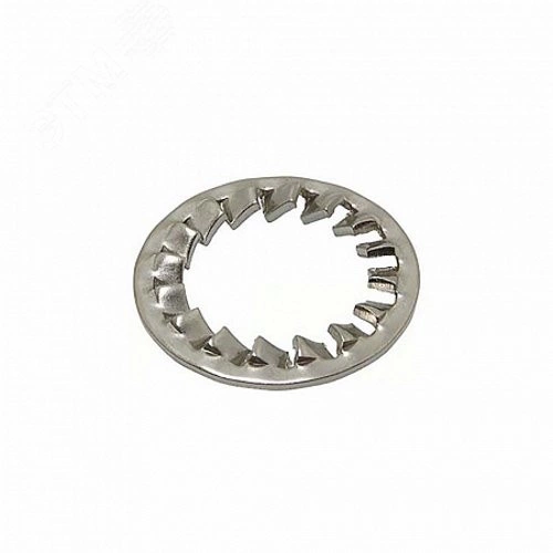 Шайба стопорная DIN 6798, форма J – с внутренними зубьями, Конструкция шайбы позволяет увеличить прижимную площадь крепежа и значительно снизить вероятность самопроизвольного откручивания резьбового соединения. Шайба изготовлена из углеродистой стали с антикоррозионным цинковым покрытием. Используется совместно с болтами, винтами, резьбовыми шпильками и штифтами с соответствующим диаметром резьбы. При установке шайбы важно контролировать затягивающее усилие, иначе зубцы станут плоскими и не будут выполнять стопорящую функцию.