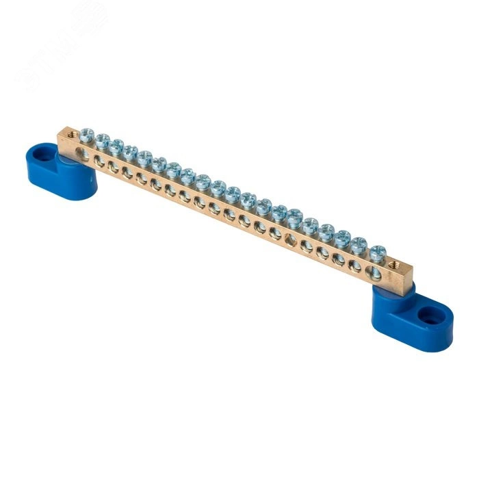 Шина '0' N (6x9мм) 20 отв. латунь 2 синих угловых изолятора розн. стикер EKF