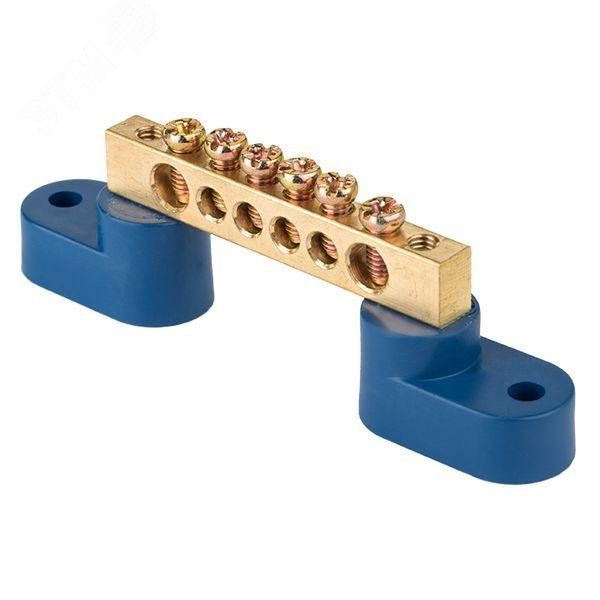 Шина 0 N 8х12мм 6 отверстий латунь 2 синих угловых изолятора PROxima