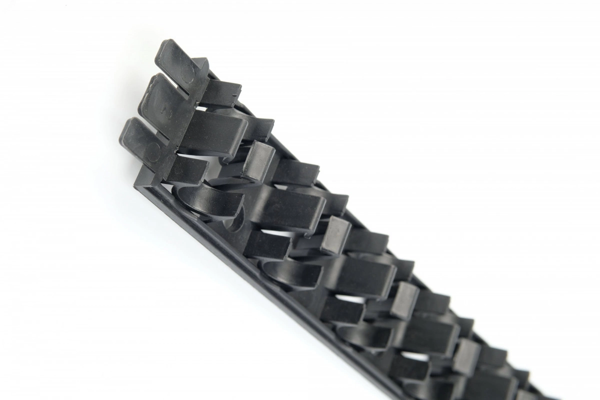Фиксирующая шина или трак (монтажная планка) для систем трубопроводов напольного отопления диаметром 16 и 20 мм. Крепится скобами на утеплитель или дюбелями на бетонное основание. Соединение траков между собой обеспечивается за счет защелок с обеих сторон.Материал - Полипропилен. Цвет - черный.