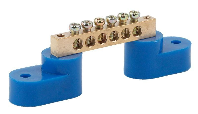 Шина N "ноль" на двух угловых изоляторах ШНИ-6х9-6-У2 NO-222-55 син. (уп.10шт) Эра Б0033435