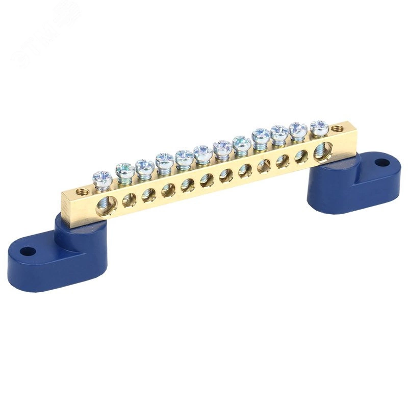 Шина ''N'' нулевая 6х9 мм на двух угловых синих изоляторах 12 групп
