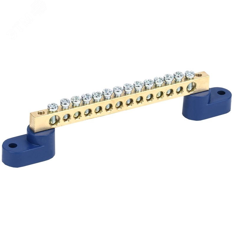Шина ''N'' нулевая 6х9 мм на двух угловых синих изоляторах 14 групп, REXANT