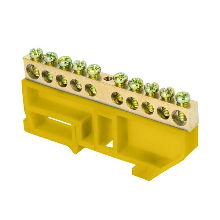 Шина нулевая N 6х9 10 отверстий желтый изолятор на DIN-рейку латунь PROxima EKF sn0-63-10-dz