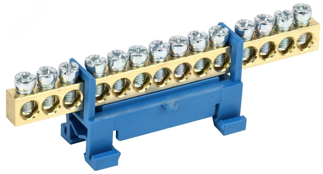 Применяются в щитовом оборудовании для подсоединения нулевых рабочих (N) и нулевых защитных проводов (РЕ). Крепление шины предусмотрено по центру (типы 8/1, 14/1) и по краям (типы 8/2 и 14/2) через изолятор нулевой шины на 35 мм монтажную DIN-рейку и через угловые изоляторы нулевой шины, а также непосредственно на панель щита. При подключении к шинам медных многожильных проводов рекомендуется оконцевание их наконечниками-гильзами. Выполнены из латуни.