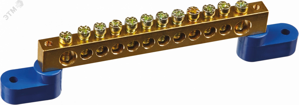 Шина нулевая изолированная Navigator серии NBB типа C2 на двух угловых изоляторах предназначена для электрического и механического соединения нулевых рабочих (N) и нулевых защитных (PE) проводников и представляет из себя латунную планку с отверстиями и винтовыми прижимами. Применяется в электрощитовом оборудовании и электроустановках с напряжением до 400 В. Корпус шины изготовлен из латуни, прижимные винты из электротехнической бронзы, изолятор из негорючего пластика.