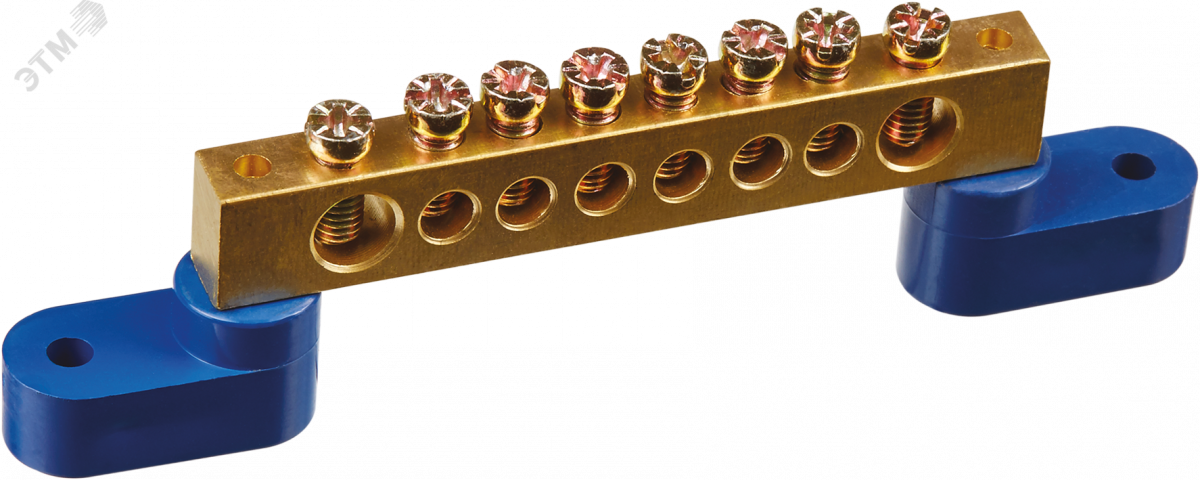Шина нулевая изолированная Navigator серии NBB типа C2 на двух угловых изоляторах предназначена для электрического и механического соединения нулевых рабочих (N) и нулевых защитных (PE) проводников и представляет из себя латунную планку с отверстиями и винтовыми прижимами. Применяется в электрощитовом оборудовании и электроустановках с напряжением до 400 В. Корпус шины изготовлен из латуни, прижимные винты из электротехнической бронзы, изолятор из негорючего пластика.