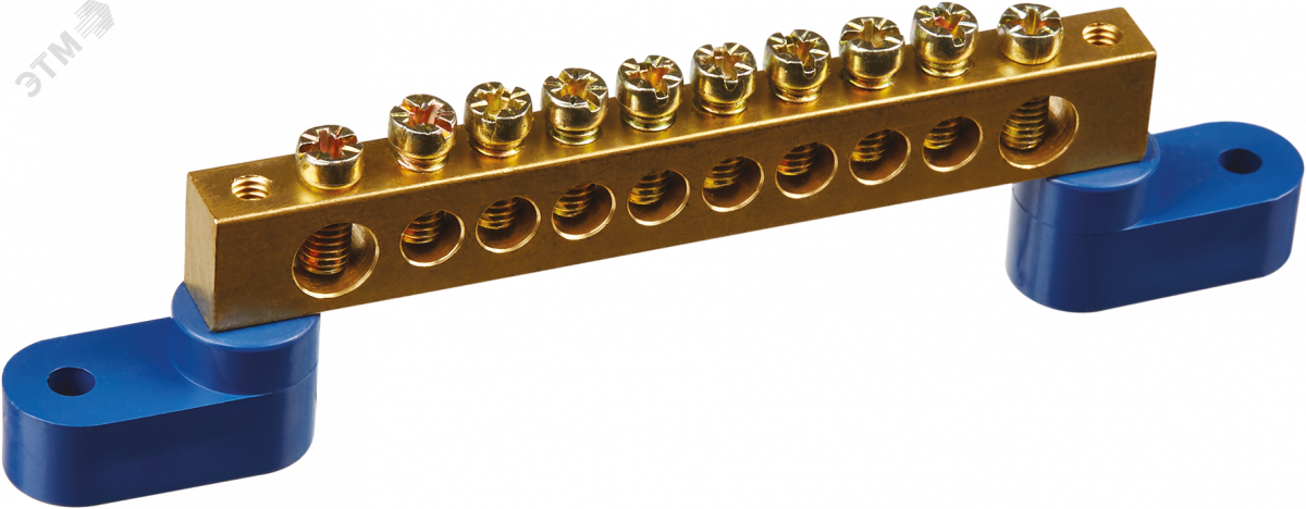 Шина нулевая изолированная Navigator серии NBB типа C2 на двух угловых изоляторах предназначена для электрического и механического соединения нулевых рабочих (N) и нулевых защитных (PE) проводников и представляет из себя латунную планку с отверстиями и винтовыми прижимами. Применяется в электрощитовом оборудовании и электроустановках с напряжением до 400 В. Корпус шины изготовлен из латуни, прижимные винты из электротехнической бронзы, изолятор из негорючего пластика.