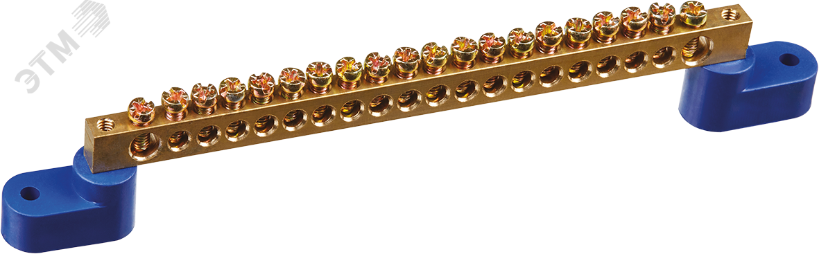 Шина нулевая изолированная Navigator серии NBB типа C2 на двух угловых изоляторах предназначена для электрического и механического соединения нулевых рабочих (N) и нулевых защитных (PE) проводников и представляет из себя латунную планку с отверстиями и винтовыми прижимами. Применяется в электрощитовом оборудовании и электроустановках с напряжением до 400 В. Корпус шины изготовлен из латуни, прижимные винты из электротехнической бронзы, изолятор из негорючего пластика.