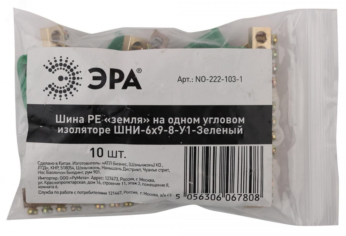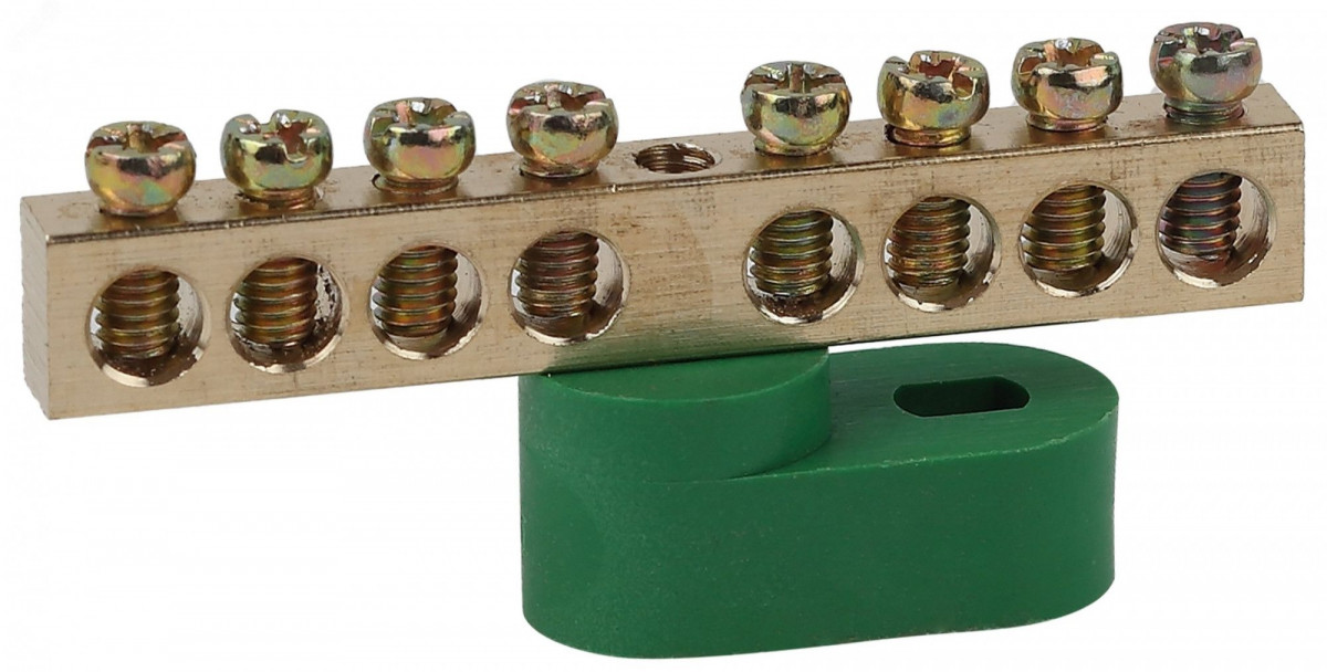Шина PE земля на одном угловом изоляторе ШНИ-6х9-8-У1-Зелен