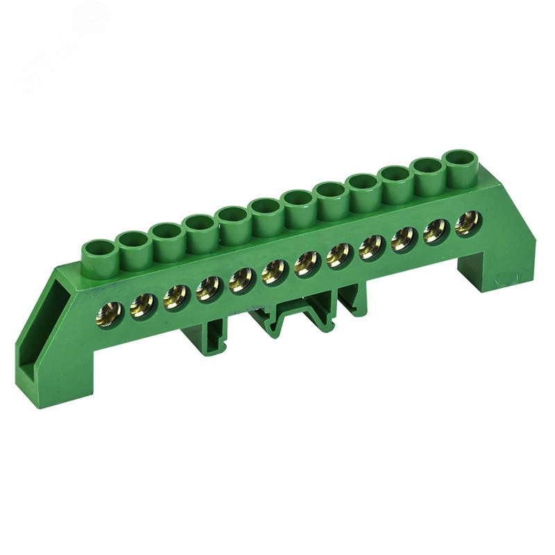 Шина PE ''земля'' в комбинированном зеленом изоляторе на DIN-рейку 6x9 мм 12 групп