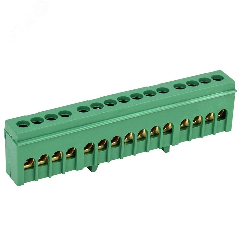 Шина PE «земля» в корпусном зеленом изоляторе на DIN-рейку 6x9 мм 15 групп, REXANT