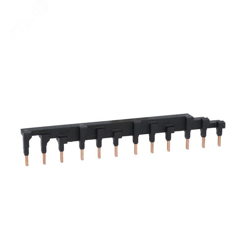 Соединительный шинный блок, обеспечивает параллельную подачу питания на силовые зажимы нескольких выключателей. Состоит из деталей из пластмассы и цветного металла.