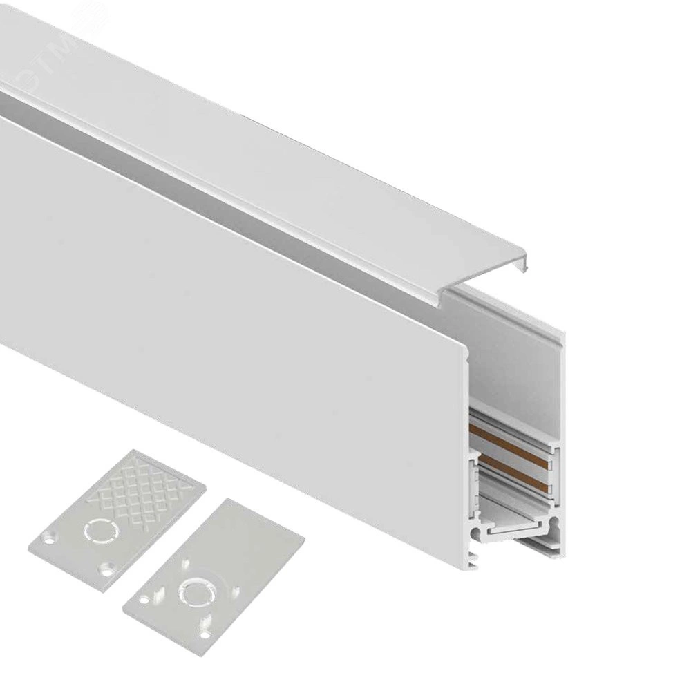 Шинопровод накладной для низковольтных трековых светильников. Прочный алюминиевый корпус. Можно устанавливать как подвесной с помощью CAB1006 В комплекте 2 торцевые заглушки и 1 лицевая заглушка